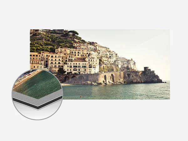 Ihre persönlichen Kunstwerke werden im hochwertigen Digitaldruck gedruckt, auf eine 3mm starke Alu-Dibond-Platte kaschiert und mit ebenfalls 2mm starkem Acrylglas versiegelt. So sind Ihre Motive dauerhaft vor UV-Strahlung und anderen äußeren Einflüssen geschützt, langlebig und formstabil.